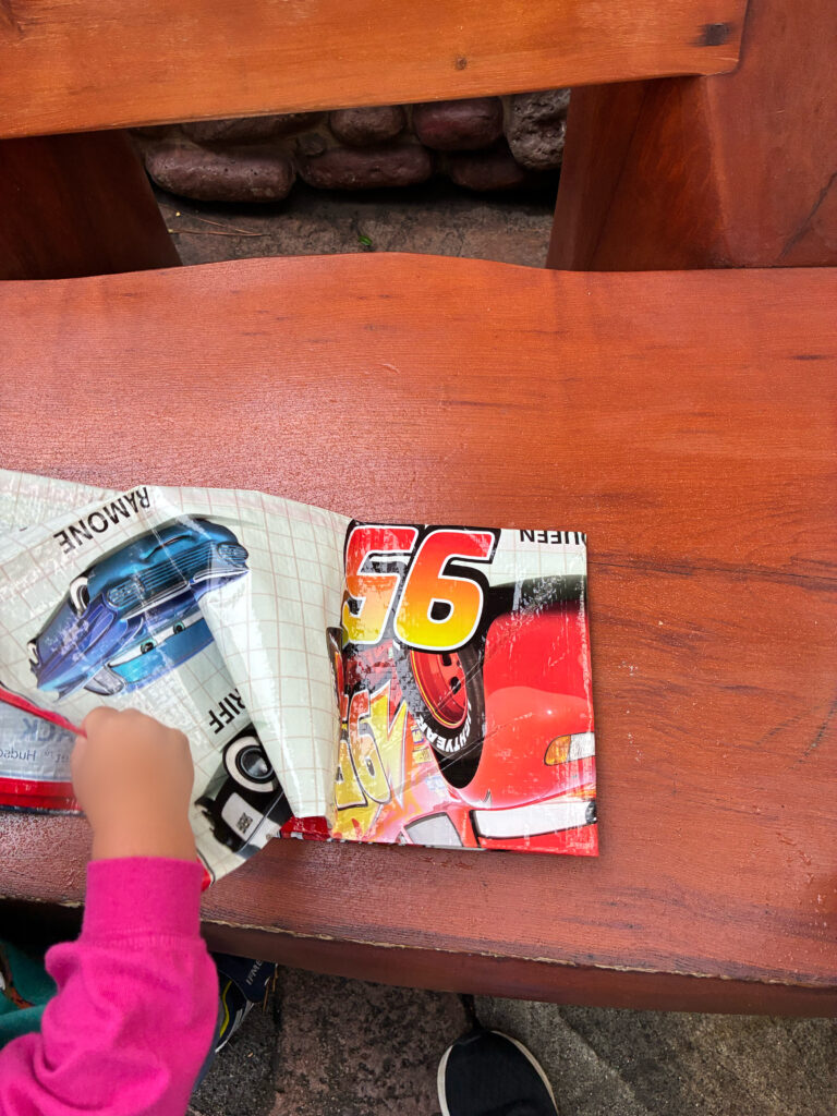 ぬりえやクーピーをもっていくこともありますが、あんまり使うタイミングはないかな、という感じです。普段からよく遊んでいる子なら暇つぶしに使えると思いますが、結構お昼寝しているタイミングも多いので、暇つぶしグッズをたくさんもっていかなくてもいいかな、と思います。