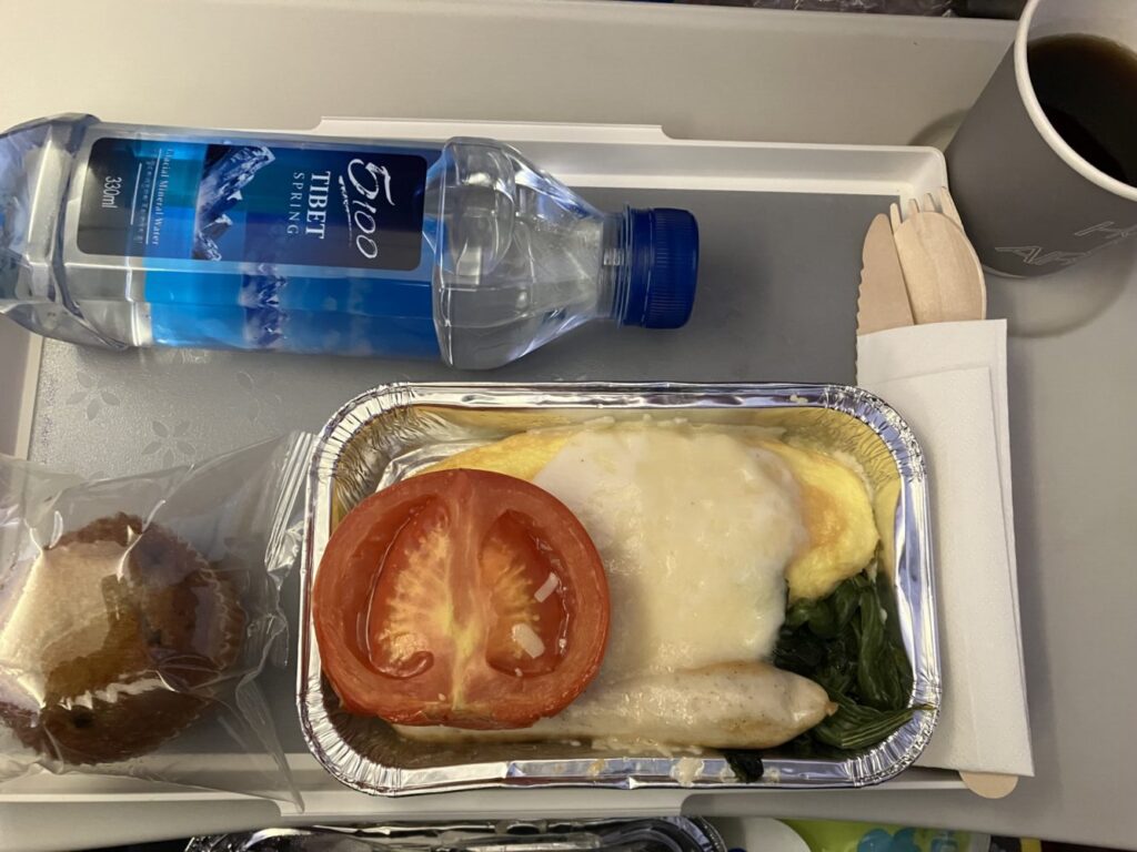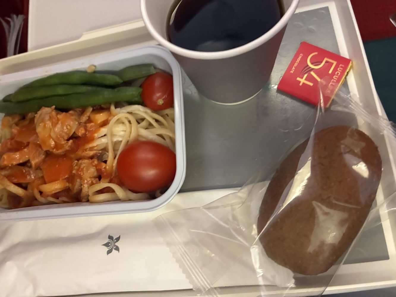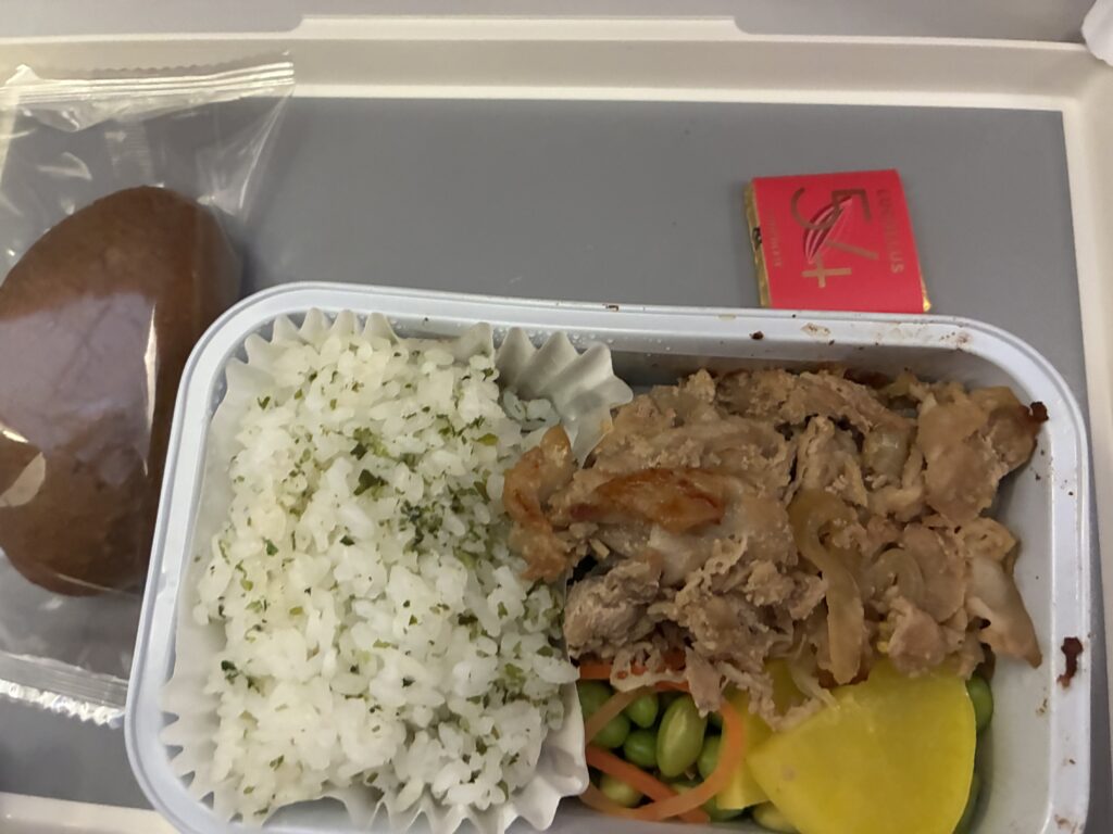 飛行機が離陸して、機体が安定したころ、大体離陸から30分後~1時間後くらいに機内食や飲み物が提供されます。