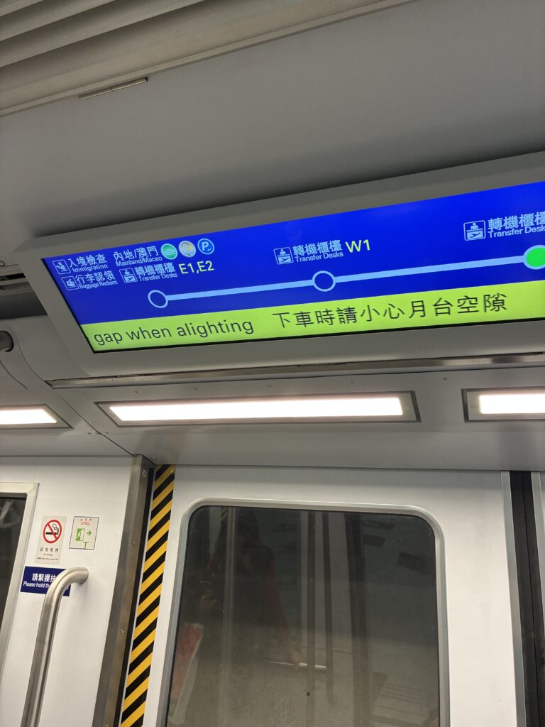 香港国際空港では、飛行機を降りてから入国審査に向かうとき、あるいは出国手続きをしてから搭乗ゲートへ行くにあたって、シャトルを利用して移動します。