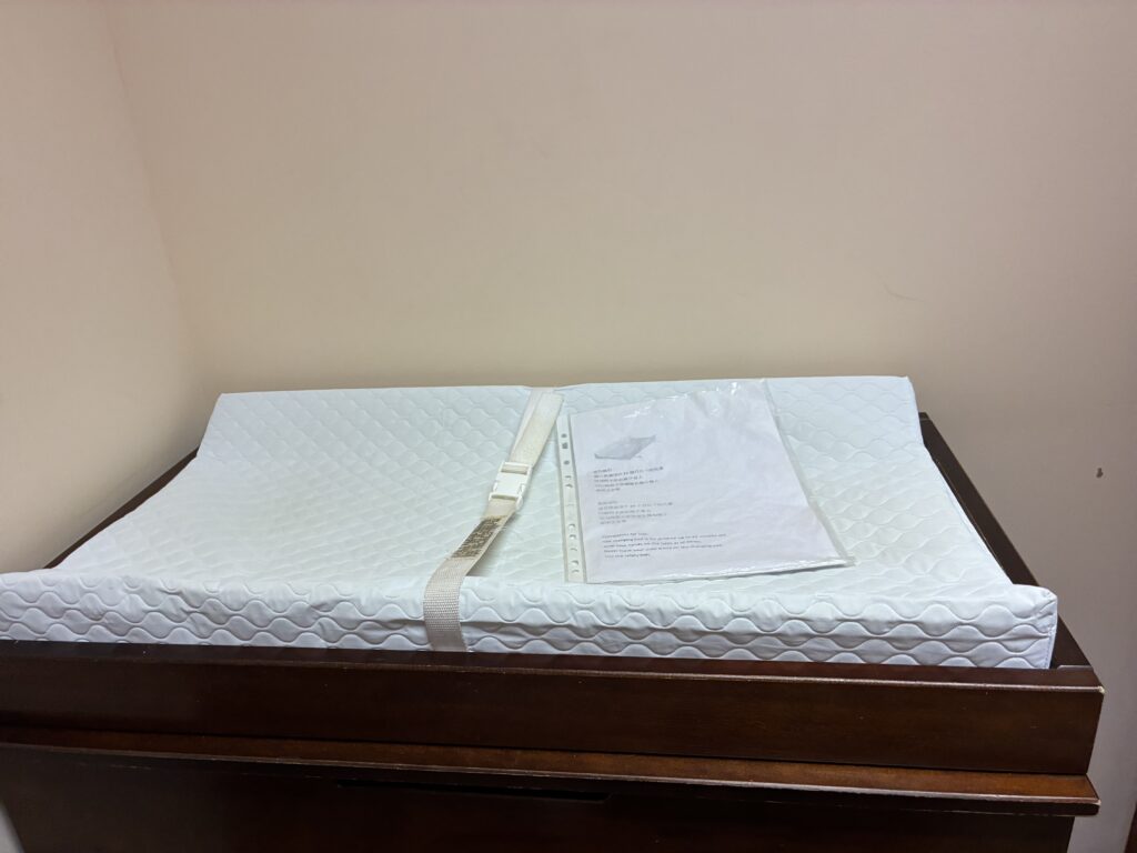 また、おむつを交換するときには、お子さんを縦にねかせるのではなく、横に寝かせてかえます。また、交換台もやや低い位置にあるので、腰痛がある方には少し変えにくいかもしれません。そして、パンツタイプのおむつだと、やや履かせにくいかもしれないので、場合によってはテープタイプのおむつの方が楽かもしれません。