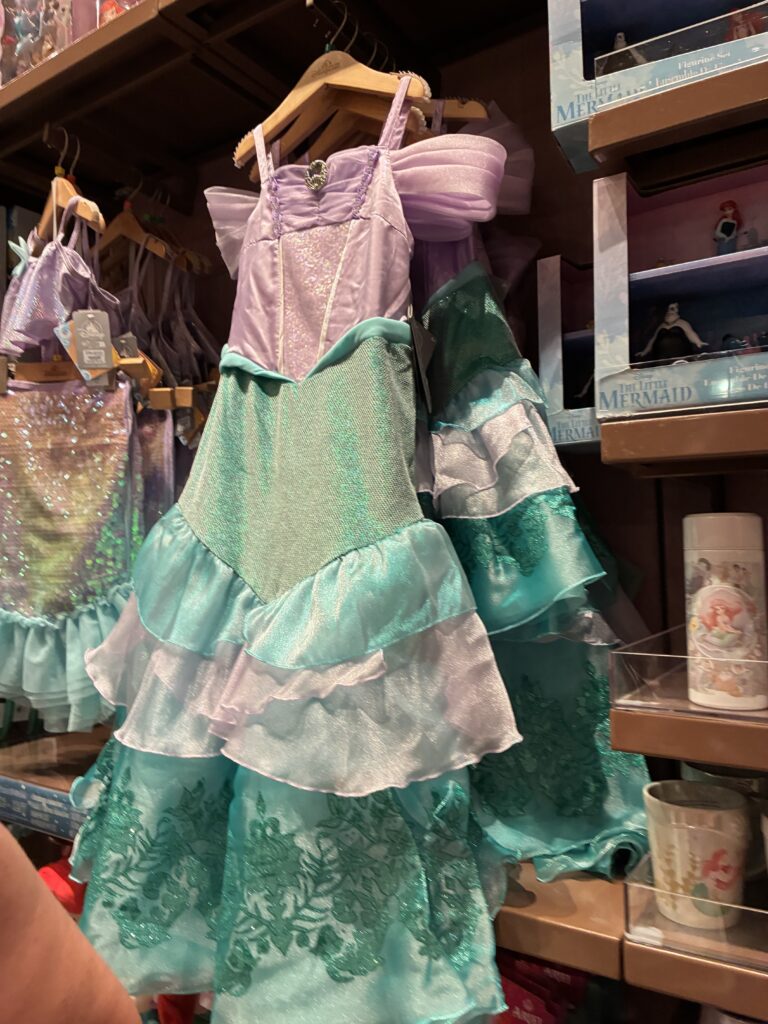 こちらは、フィルハーマジックの出口にあるマーリンズ・トレジャーですが、ジャスミンやアリエルのドレスもありました。