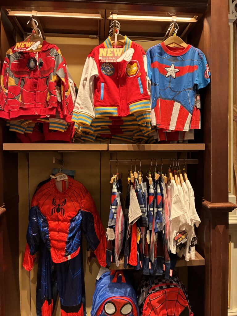 子ども用のコスチュームから、大人用のTシャツ、おもちゃや日用品雑貨、お菓子など、たくさんのマーベルグッズを買うことができます。