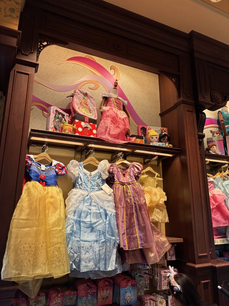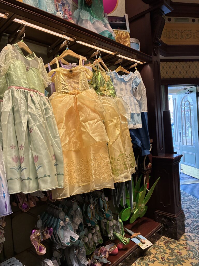 また、ファンタジーランドにある、ストーリーブック・ショップは、ビビディ・バビディ・ブティックがあり、プリンセスドレスも販売されているようです。