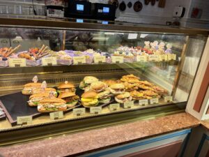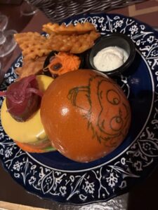 ジュディのワッフル。バタークリームのところに靴下のような形をしたお菓子が付いていました。ワッフル自体はあまり甘くなく、カリッとした食感。バターとシロップをかければ、こってりとした甘さをプラスできます。