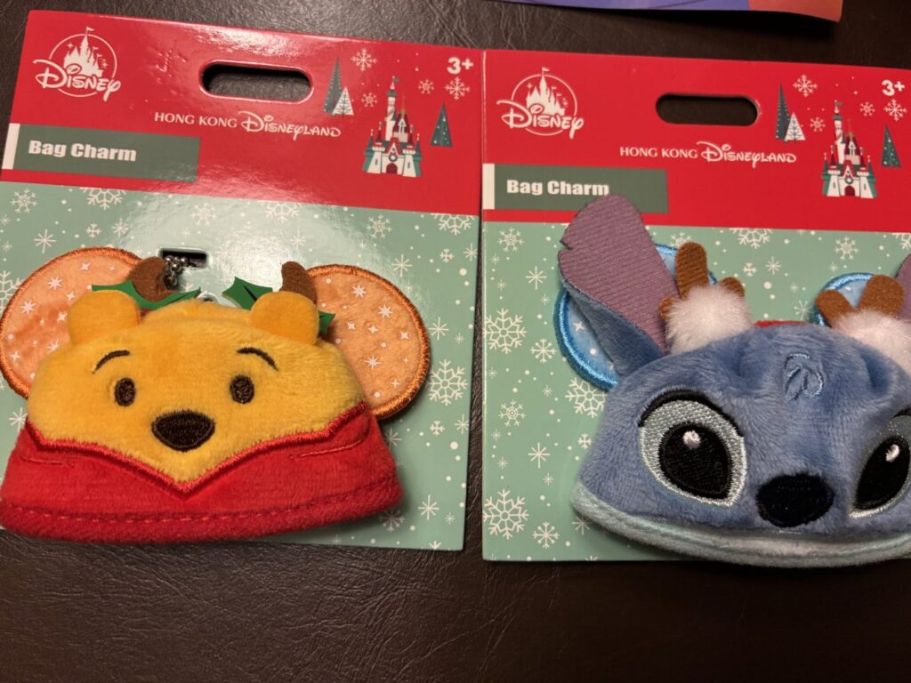 今回は、プーさんとスティッチを家族のお土産用に購入。1つHKD59のところ、2つでHKD99の特別割引になっていました。安全ピンと、ボールチェーンがついていて、バッグやカチューシャなど、好きなところにつけることができます。お気に入りのぬいぐるみなどにつけてもかわいいです。