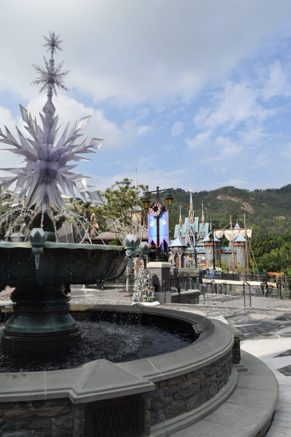 香港ディズニーランドといえば、パークに入園する前のゲートや、ミッキーがサーフィンをしている噴水スポットがとてもかわいい写真撮影スポットになっています。