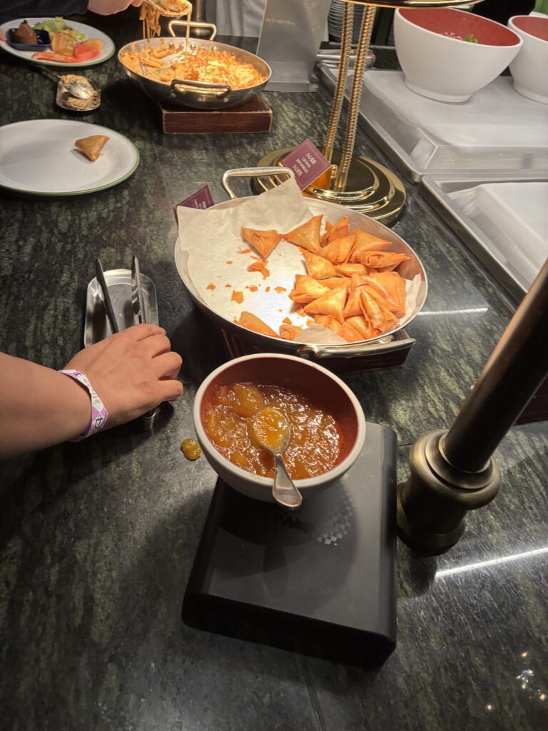 バンズはあまりしっとりしていない感じで、お肉のボリュームやこってり感があってかなりお腹いっぱいに。そのため、セミビュッフェの料理はいろいろありましたが、一部しか食べられませんでした。