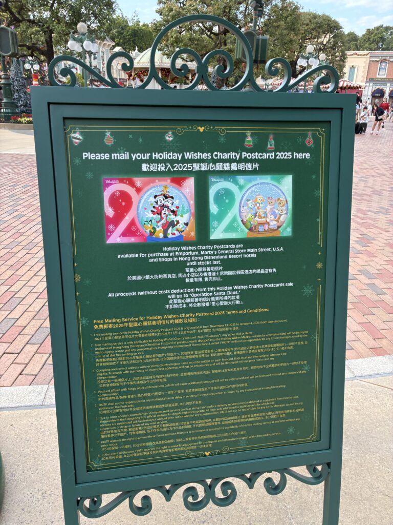 2025年のクリスマスシーズンのポストカードは、香港ディズニーランド開園20周年を記念した「20」の文字があしらわれた、スノードームモチーフのポストカード。