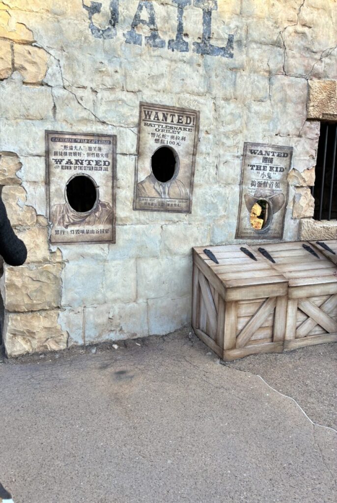 ウォンテッド(お尋ね者)の顔出しパネルのようなオブジェや、独房モチーフがある写真スポット、「ワイルド・ウエスト・フォト・ファン」もあります。