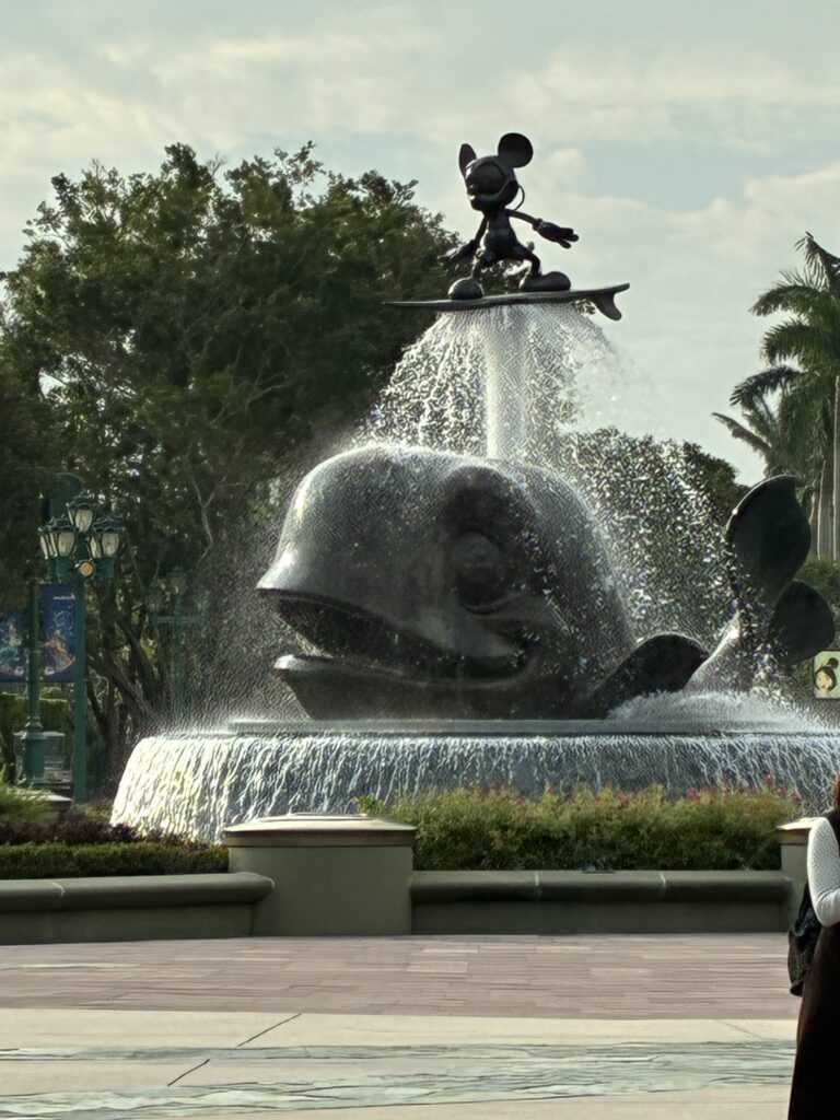 この先に進むと、ミッキーがサーフィンをしているかのような噴水が見えてきます。