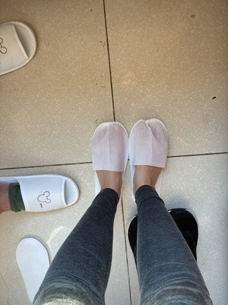 ホテル予約サイトには、スリッパはアメニティに含まれていなかったのですが、薄手のものが部屋に置いてありました。ディズニーホテルでもらえるものよりもだいぶクオリティは質素なもの。