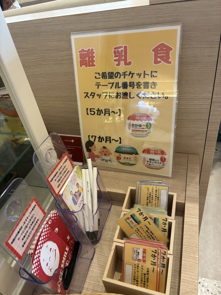 離乳食の時期のお子さんには、ビンタイプの離乳食の提供もありました。