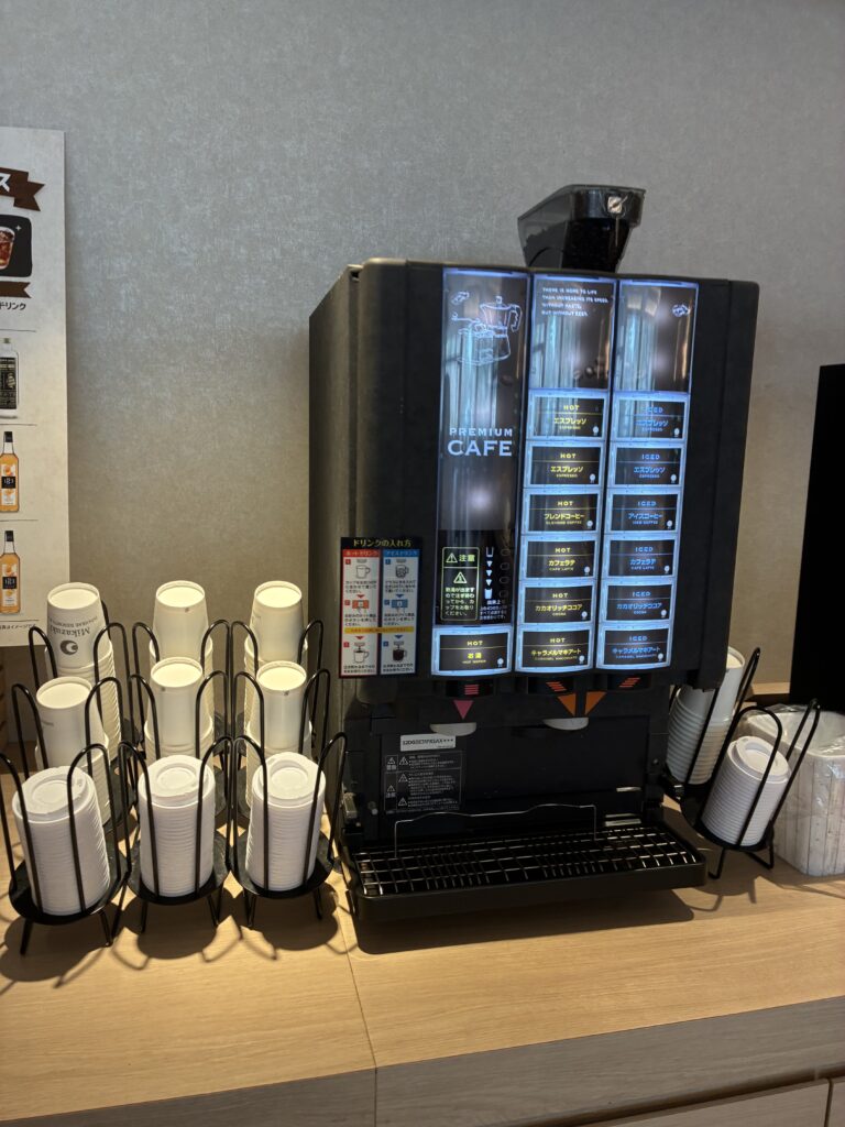 コーヒーは、持ち帰りができるカップに入れることができるので、ブレンドコーヒーやカプチーノを作って、ラウンジで休憩したり、カフェタイムを楽しむことができます。