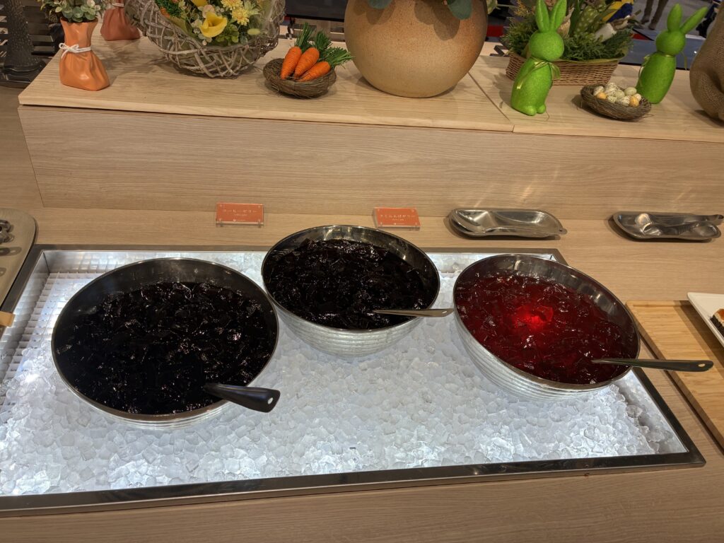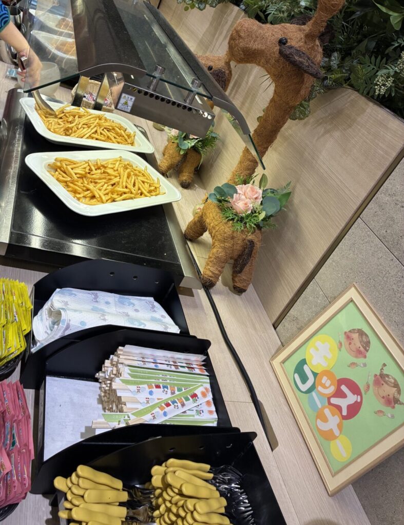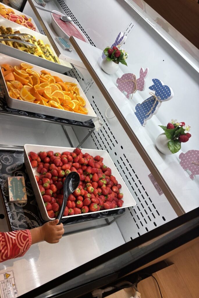 バイキングには、子ども用コーナーもあり、低めの台に子どもメニューが並んでいて、子どもも見えやかったり、取りやすくなっていました。