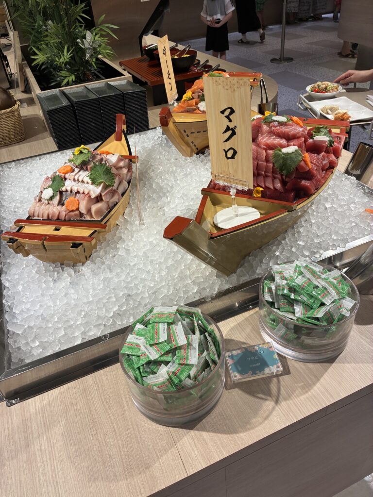 ただ、ステーキや刺身、さくさくのてんぷら、デザートなどたくさんいただくことができました。