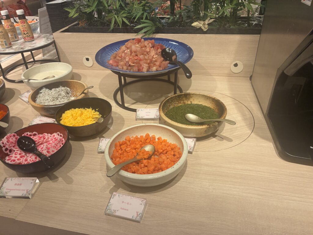 朝食メニューでおいしかったのは、自分でつくることができる海鮮丼。