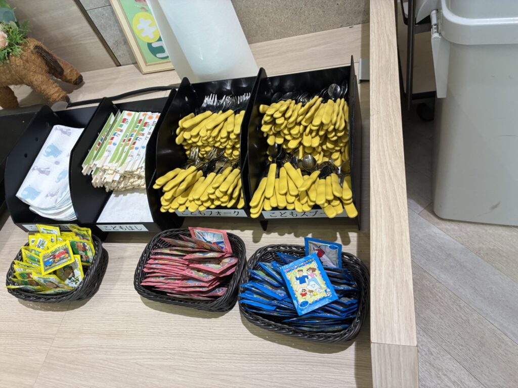 また、キッズチェアや、子ども用の食器、エプロン、おしぼりもたくさんあるので、子連れでも安心。
