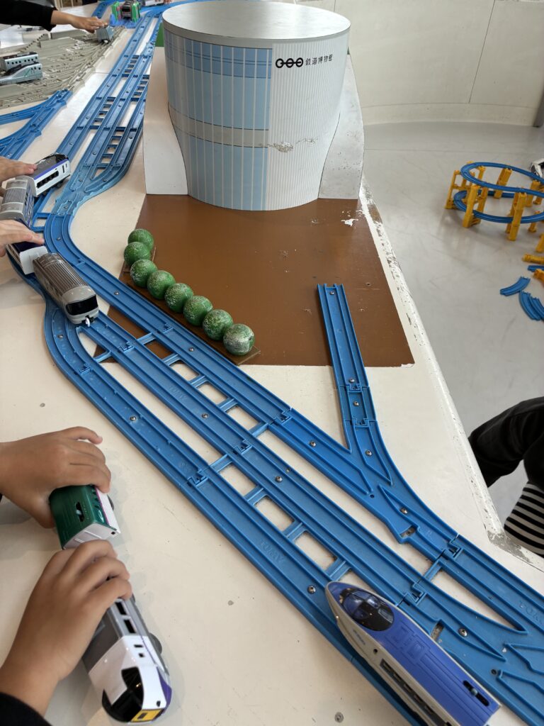 プラレールゾーンでは、10時30分のオープンと同時に、たくさんのお子さんが遊びに来ていました。各々電車を連結させ、線路を走らせたり、自分で線路を組み立てたりして楽しんでいました。
