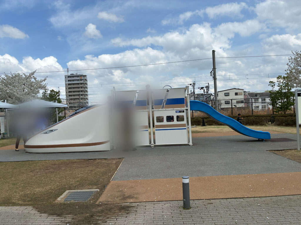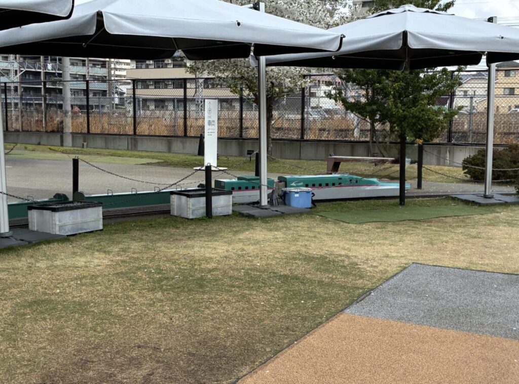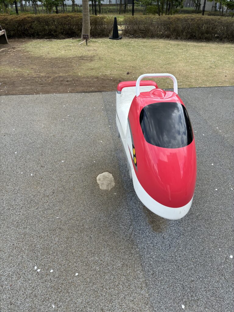 ミニはやぶさ号の近くには、新幹線の遊具もあるので、天気が良ければ屋外で遊ぶこともできます。