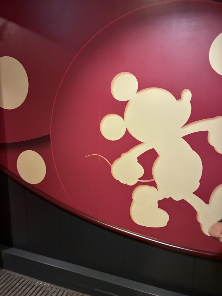 赤を基調にした壁や、黒の廊下で、ミッキーカラーテイストの内装になっている。