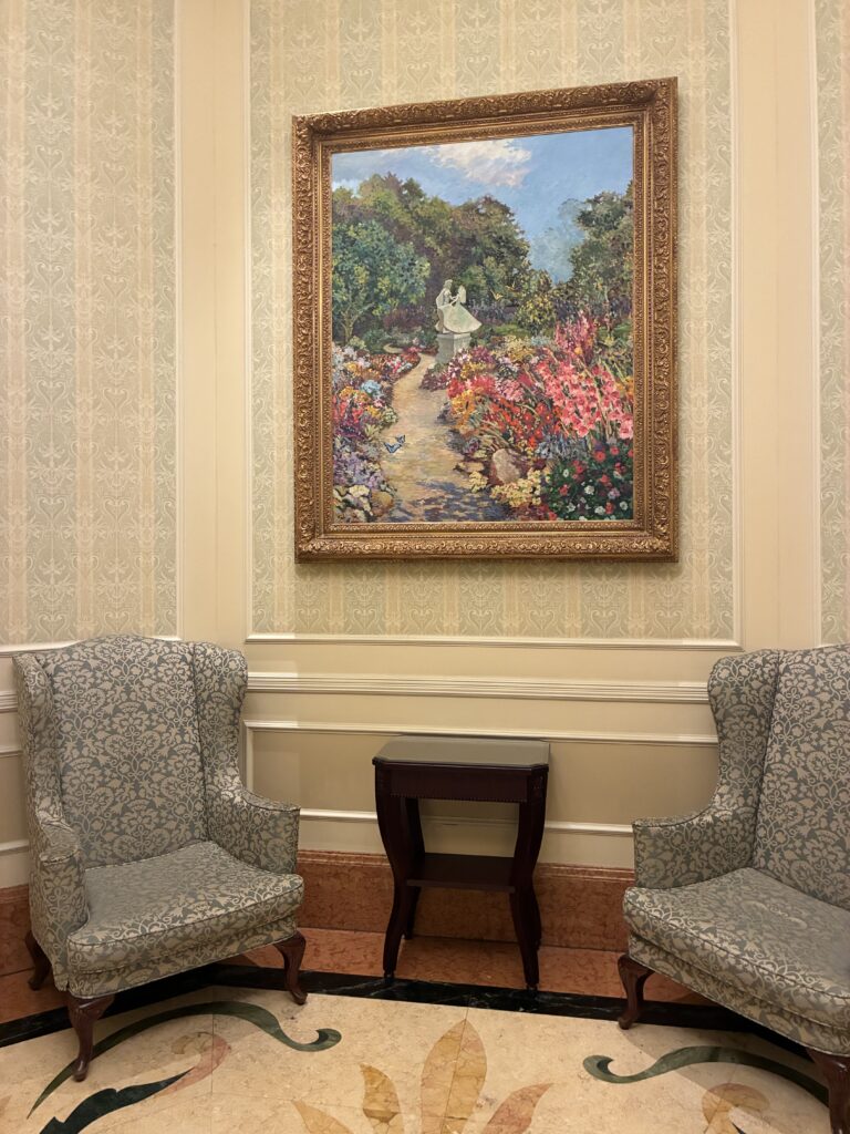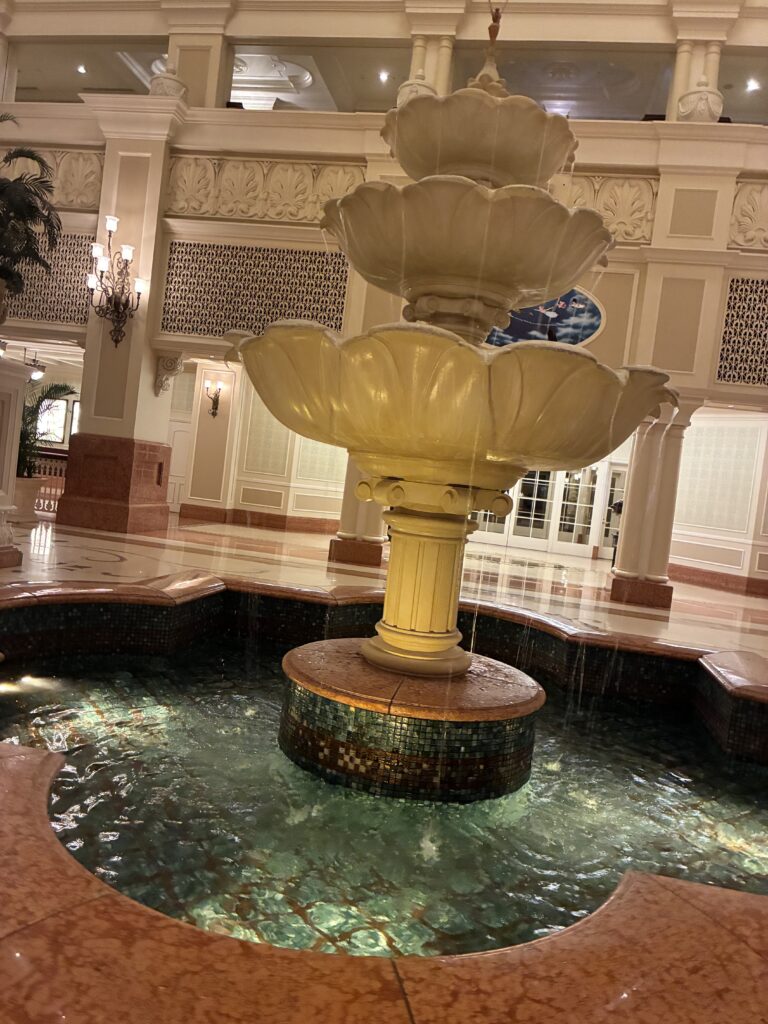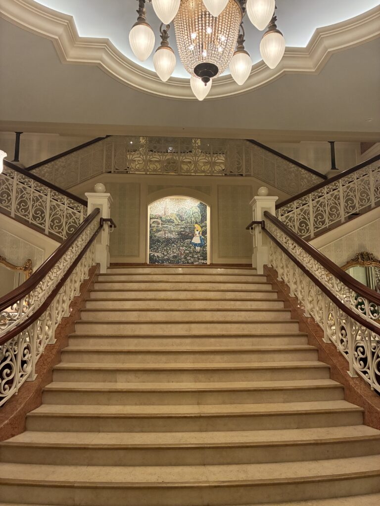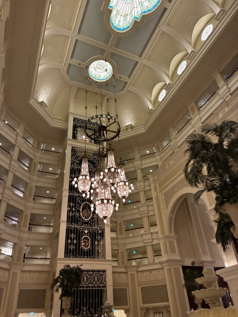 ホテルはヴィクトリア朝様式の優雅な雰囲気。館内のあちこちにディズニー作品のモチーフやアートが飾られていて、歩いているだけで楽しい空間です。