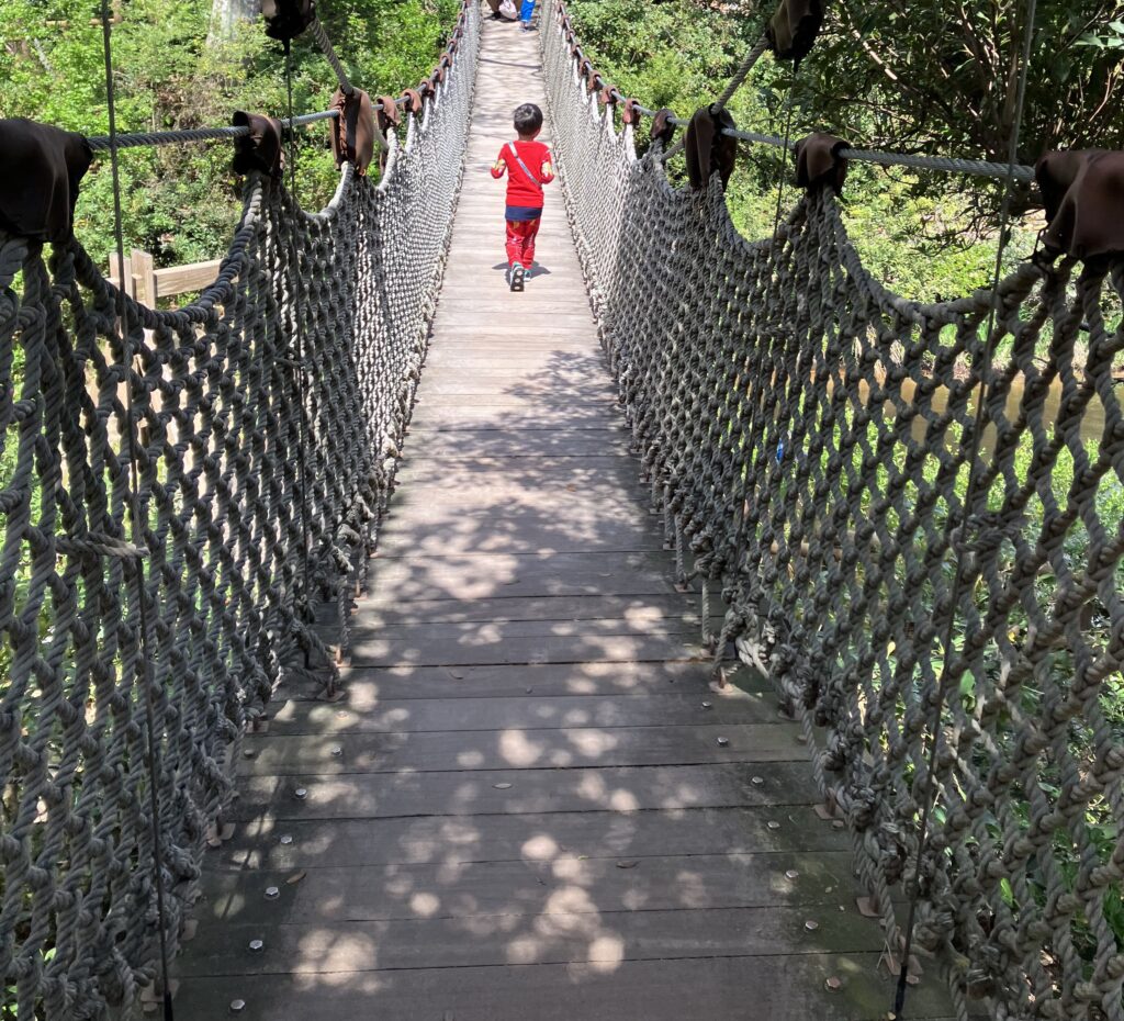 トムソーヤ島は、洞窟やつり橋、ツリーハウスなど、小さいお子さんが探検できるスポットがたくさん。