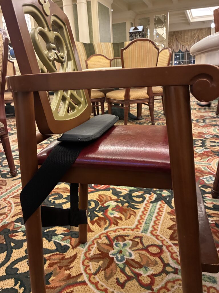 子ども用に、ベビーチェアと、お腹周りに着用するベルトも用意してくださいました。