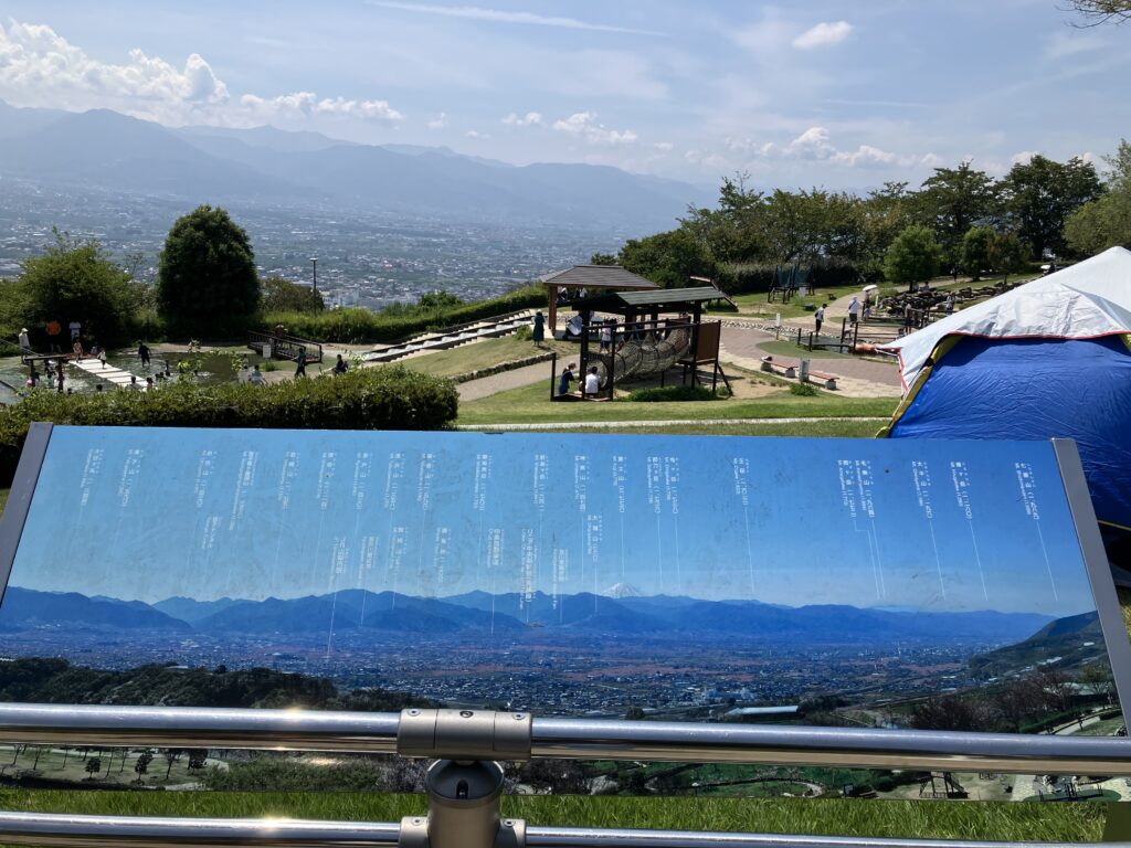 フルーツ公園に到着すると、広大な山梨の盆地や、高い山々が見渡せる絶景でした。